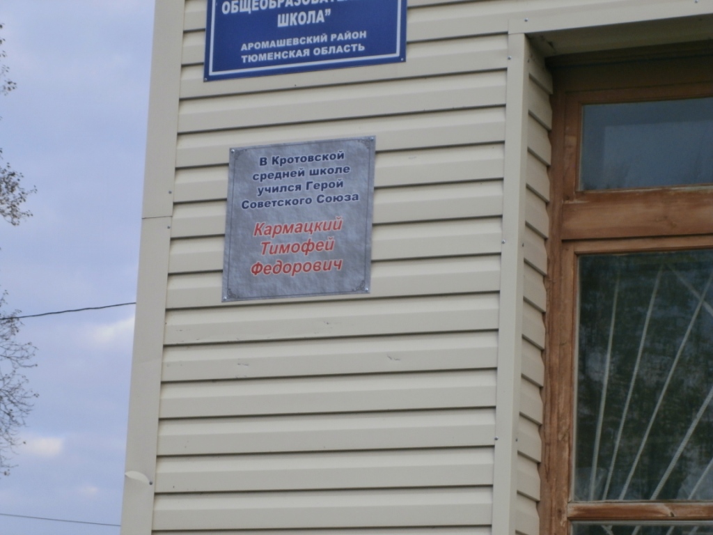 24 сентября 2014 года в Кротовской средней школе прошел торжественный митинг, посвященный увековечиванию памяти Героя Советского Союза Кармацкого Тимофея Федоровича. Данное событие прошло в рамках празднования 70-летия Победы. На Митинге присутствовали глава Кротовского поселения Ковальчук С. Я., работники сельского Дома Культуры, библиотеки, председатель Совета ветеранов Ивановец М. И., родители обучающихся, жители села Кротово.