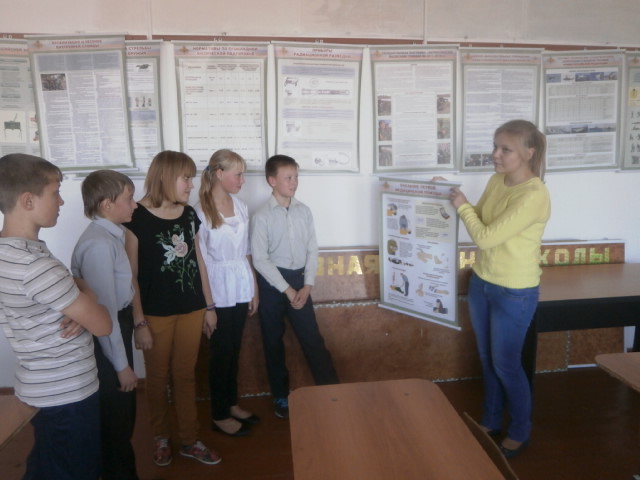 На уроке ОБЖ ребята прошли инструктаж по обращению с огнетушителем, практикум по оказанию первой медицинской помощи, просмотрели видеофильм о безопасном поведении на пожаре.