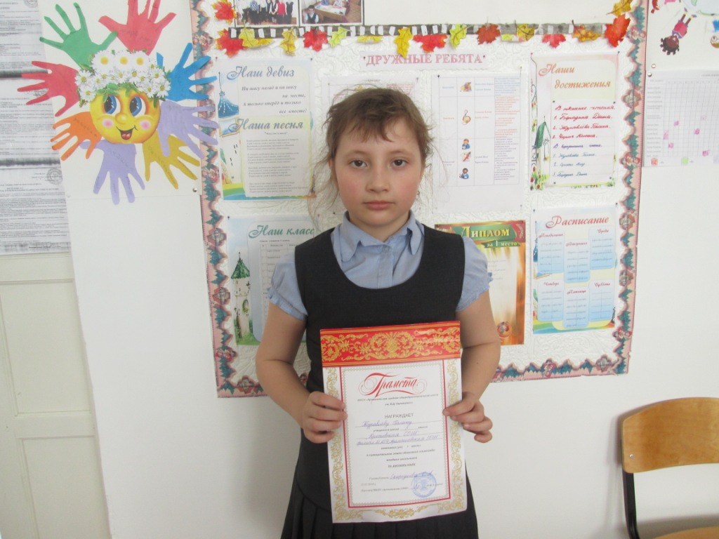 - 3 место по предмету «Окружающий мир» заняла ученица 3 класса (учитель Скареднова С.А.)