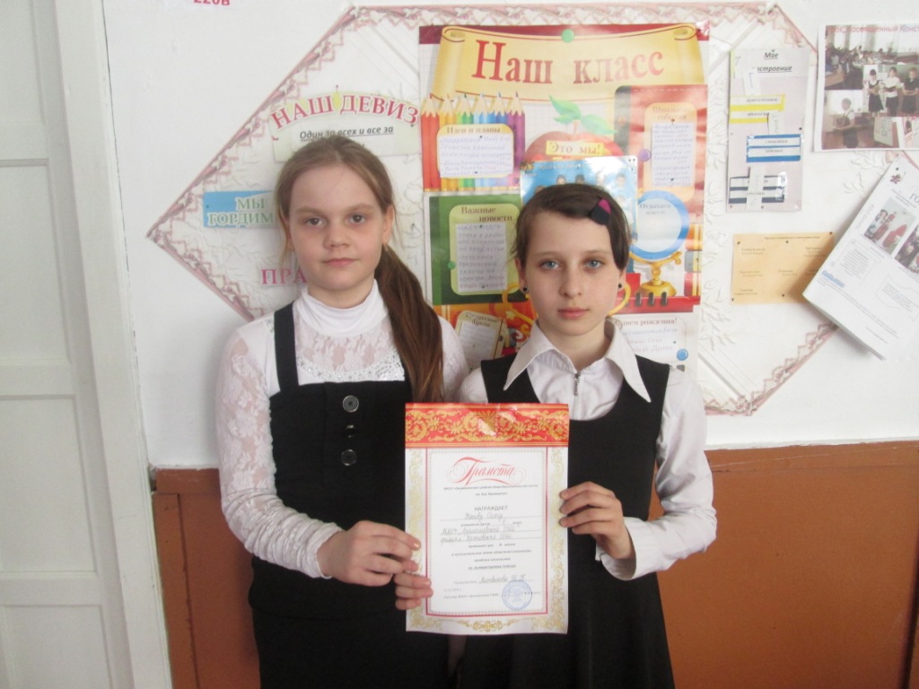 Ученицы 4 класса (учитель Литвинова Т. Н.) прошли испытание по литературному чтению: Котова Ольга заняла 2 место, Григорьева Диана — 3 место.