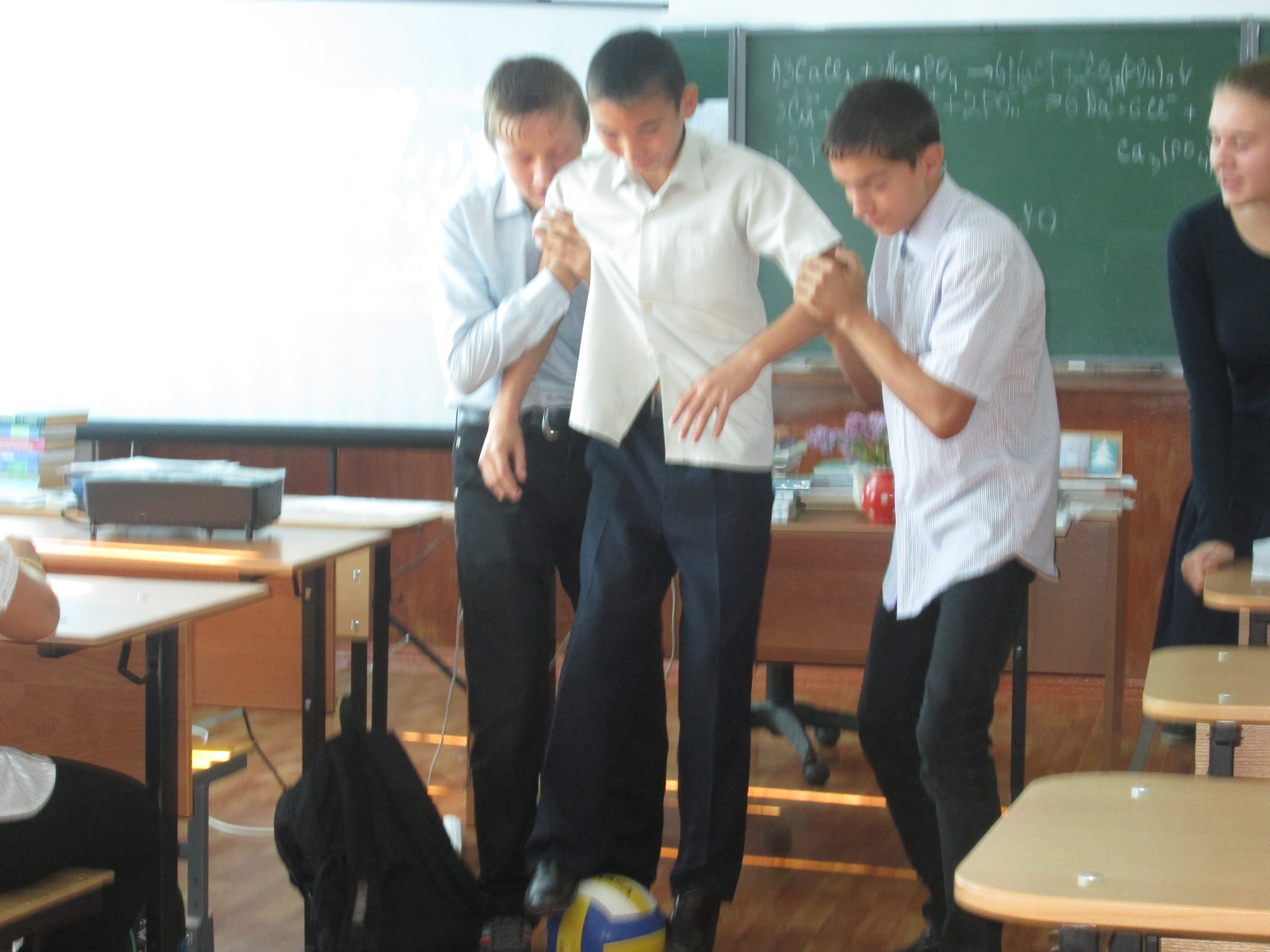 Юноши школы благодарят представителей волонтерского движения за проведенное мероприятие.