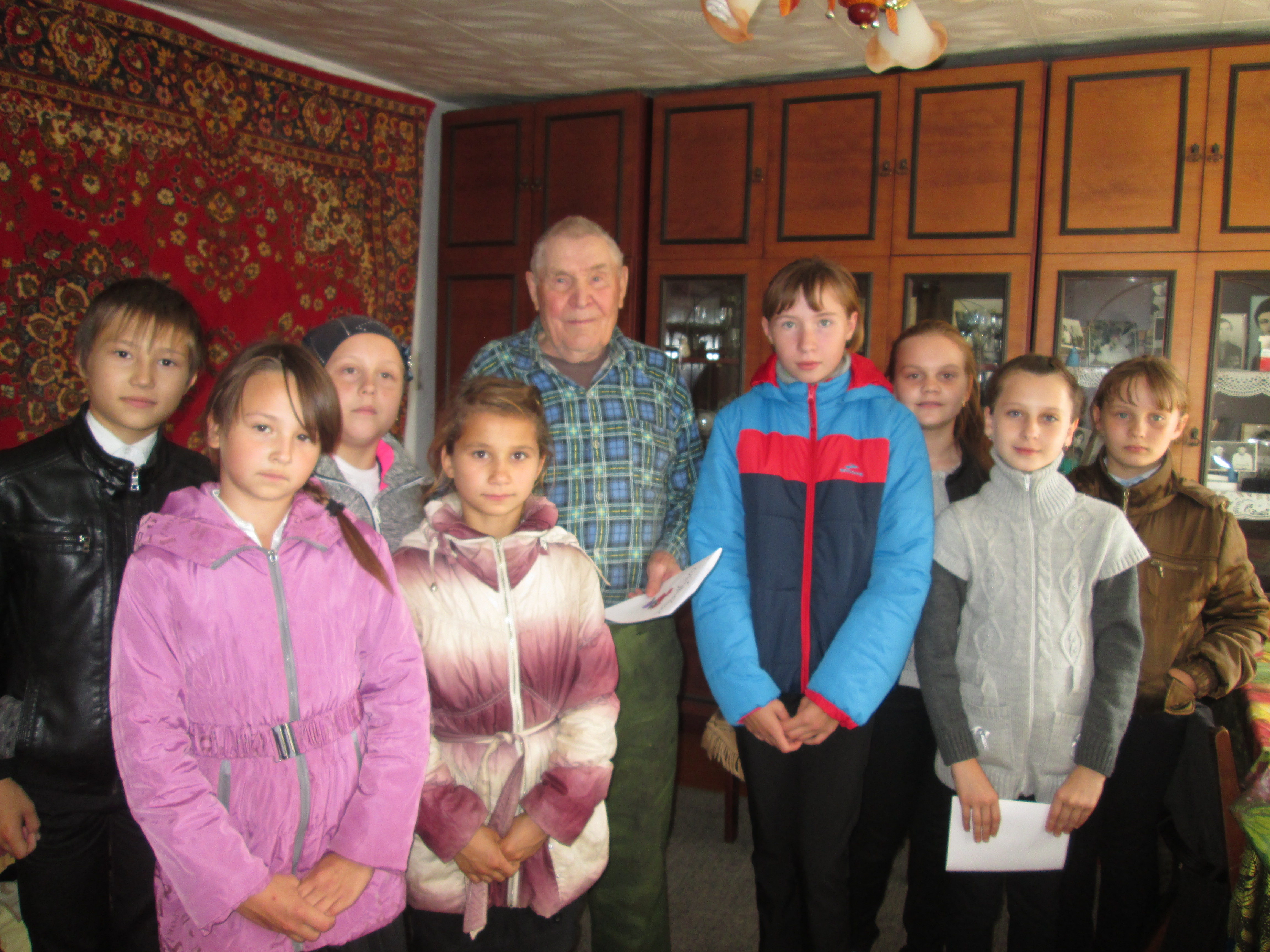 В частности посетили квартиру участника Великой Отечественной войны Поступинского Андрея Ивановича., Ребята пожелали уважаемому человеку, постоянному гостю школы здоровья, долгих лет жизни и бодрости. Школьники участвовали в концертной программе в Доме Культуры в День пожилого человека